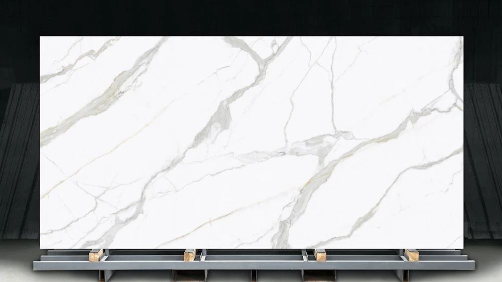 Combina la elegancia y sofisticación del mármol Calacatta con la durabilidad y resistencia de la tecnología sinterizada. Su acabado glossy aporta un brillo intenso que realza sus delicadas venas blancas y grises, creando un efecto visual de lujo y sofisticación.
